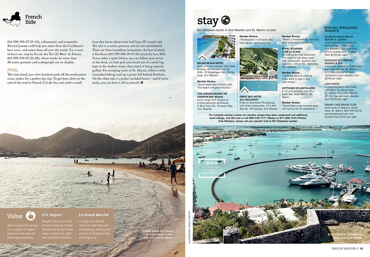 Art directed exclusive photo shoot in St. Martin for this custom magazine created exclusively for RCI time-share holders. Responsible for photo selection, layout and illustration.